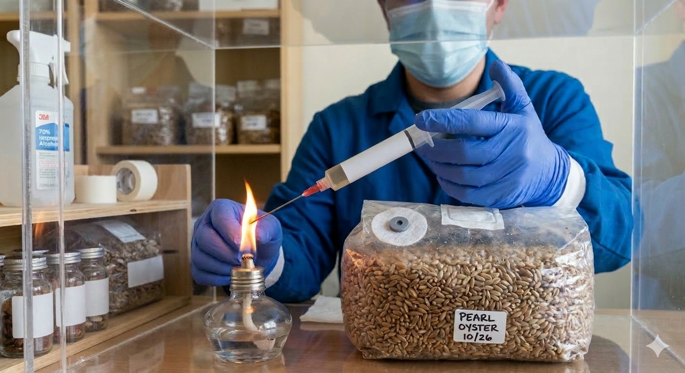Inoculation transfers live mycelium into sterile substrate. Clean technique prevents moulds and bacteria that destroy grows. Success rate jumps from 30% to 90%+ with proper methods.